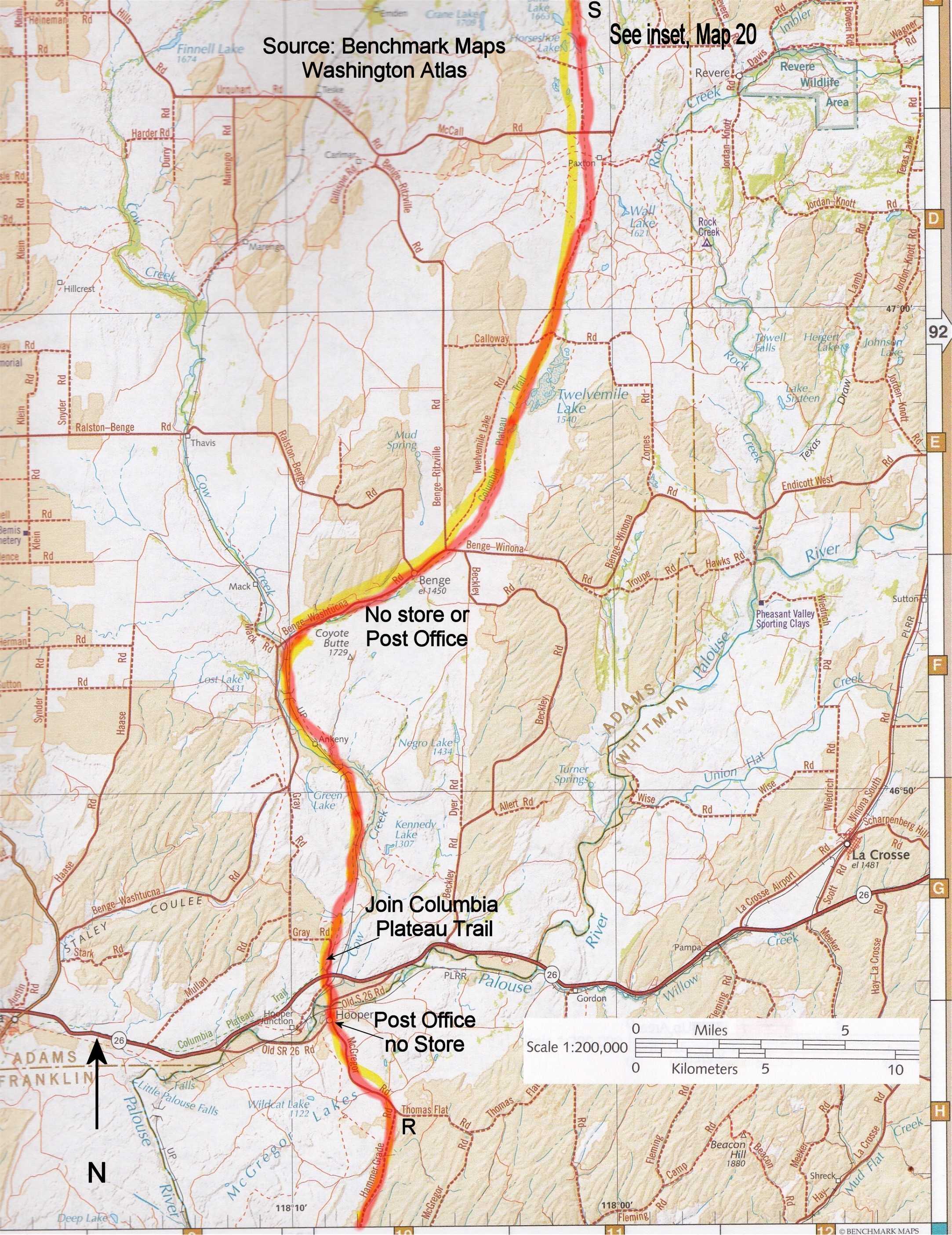 The source of some of the maps posted below is the Benchmark Map: Washington Road & Recreation Atlas I bought one of these atlases for each state along the Desert Trail. They were super handy for planning purposes and you can photocopy pages to bring with you for “the big picture.”